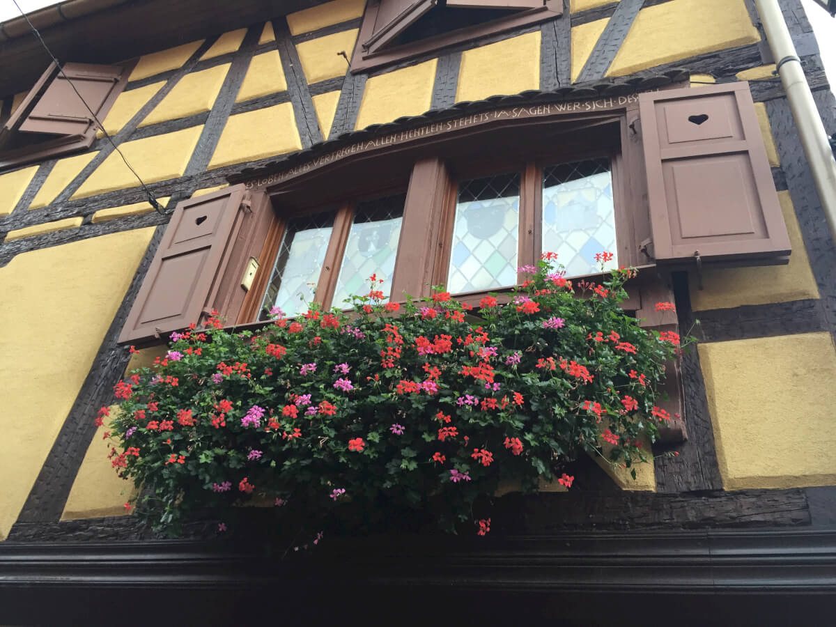 Eguisheim (pronounced Egg-iss-hime) was never part of our plan when we set out to travel the world. In fact, we’ve never even heard of it until we met a world traveler from Australia who told us about it. Watching the way she talked about it made me decide right then and there that I was going to this town! Oh my gosh, I’m glad we did!!!